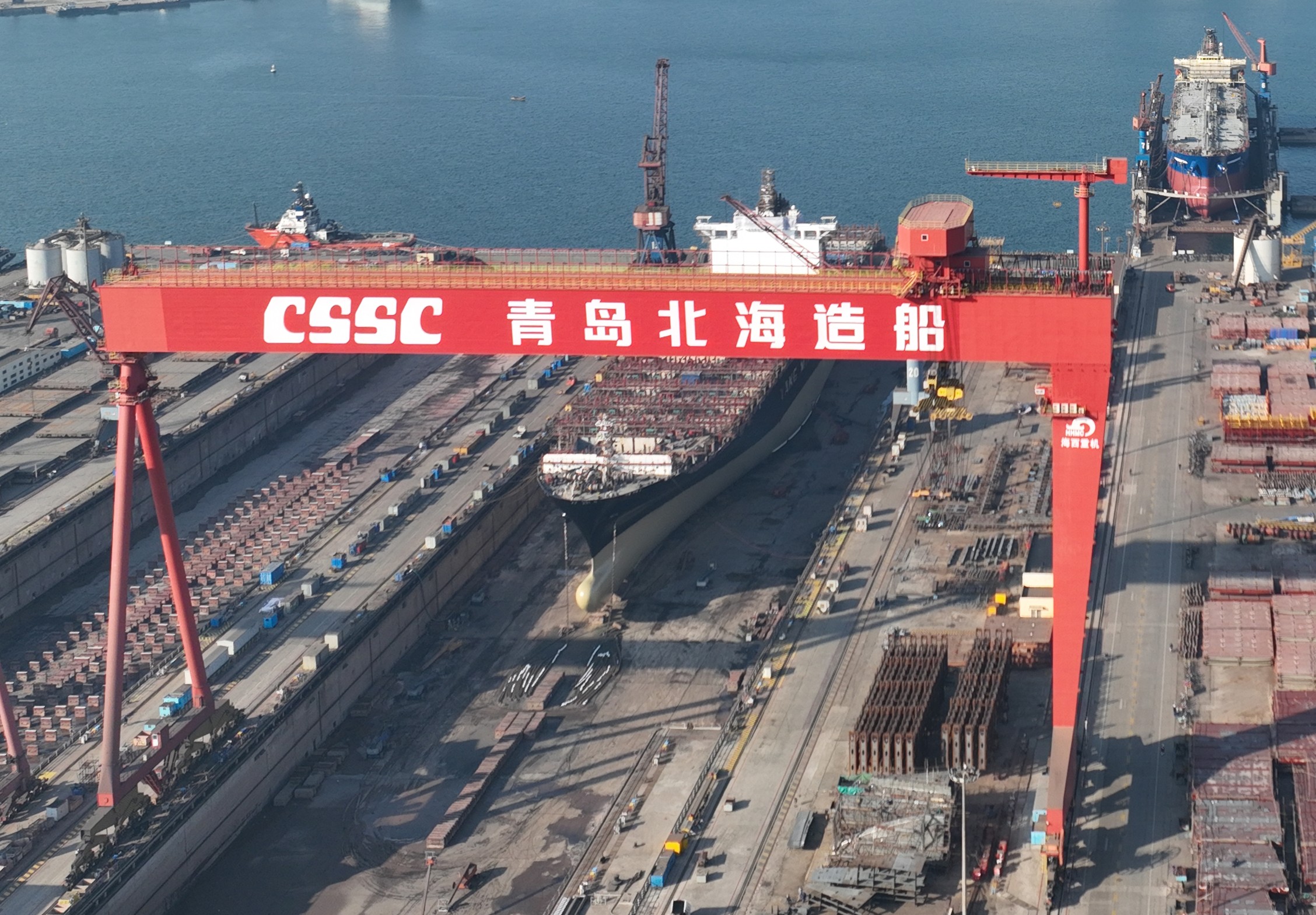 大型造船門式起重機(簡稱龍門吊)主要用于船廠船體制作場所以及大型鋼結構裝焊平臺,可用于船體、海洋平臺和大型起重設備等大型鋼結構的建造工作,對于船體等大型鋼結構的翻身、合攏以及海工模塊、海工平臺的整體吊裝裝船或下水等作業優勢尤為突出,效率高、成本低、安全風險小,技術達到國內領先水平。